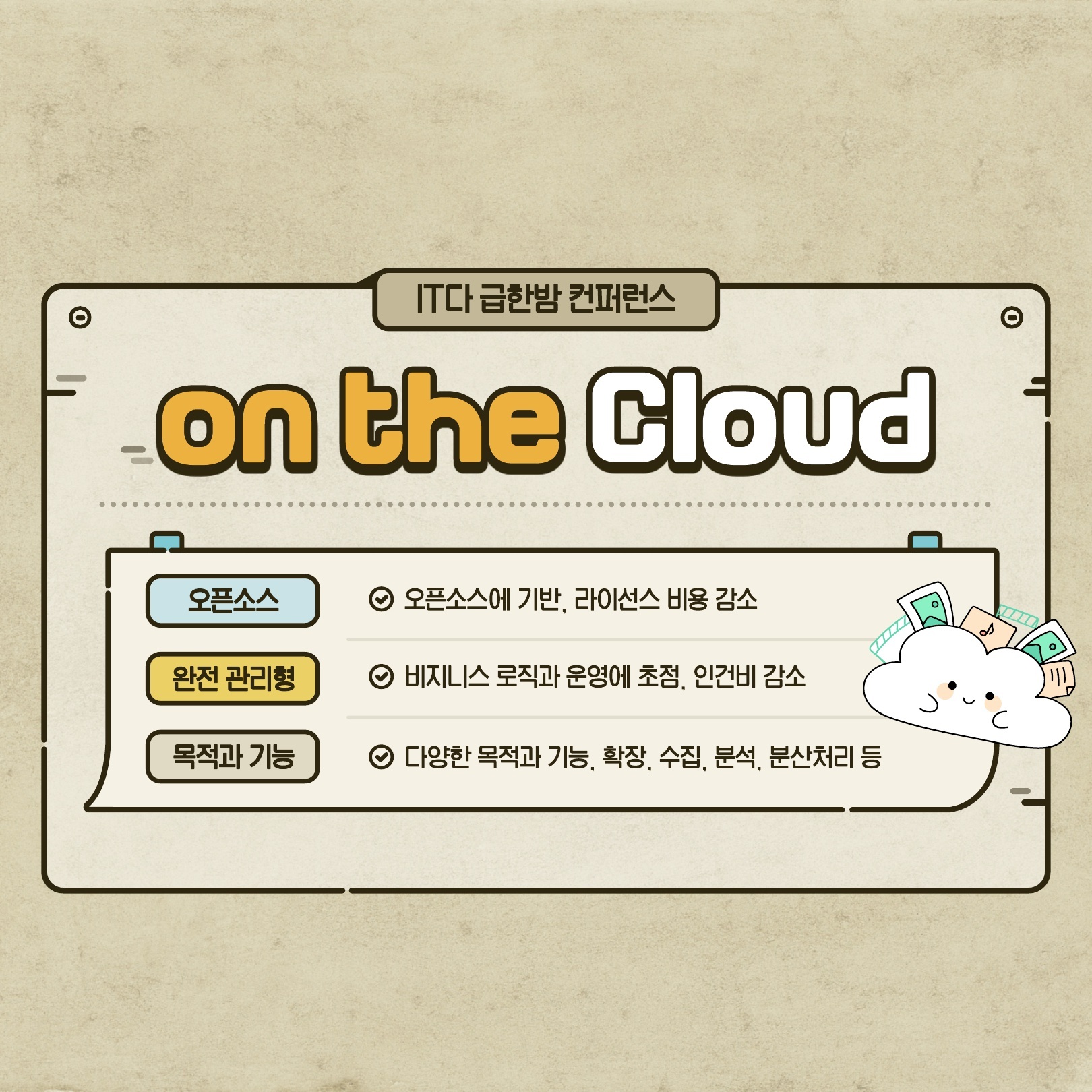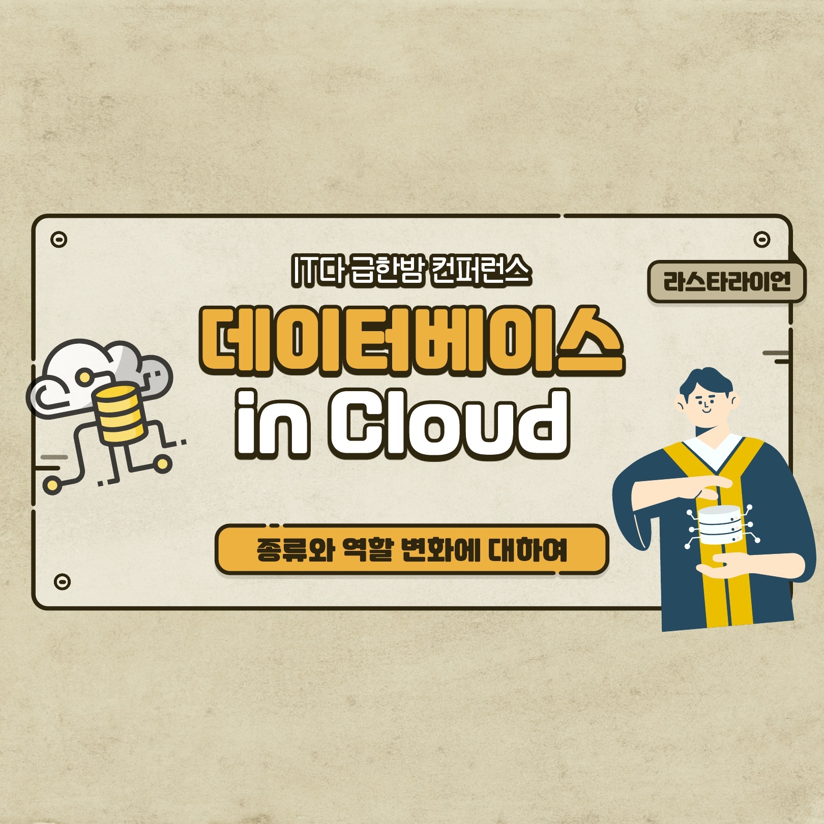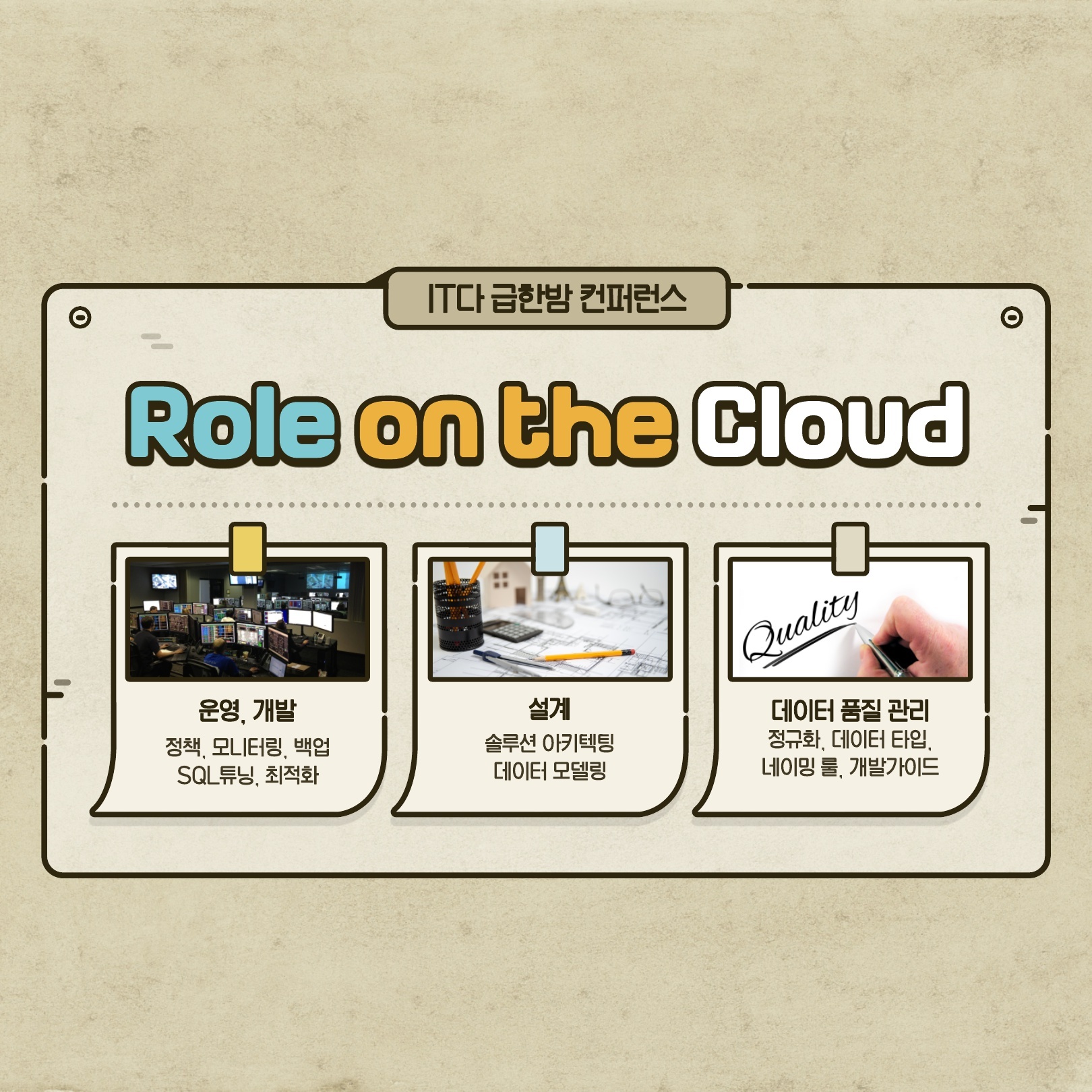 어쩌다 보니 연사로 늦게 합류하게 되었습니다. 주업은 DB이지만, 인프라나 클라우드 쪽 행사에 많이 참여하고 있습니다. 주제는 성장이었는데, 어쩌다보니 주제를 못 듣고 준비를 하게 되긴 하였네요.