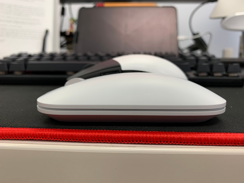 제 손크기가 딱 성인 남자 평균이라고 생각하는데 실제로 느낀 그립감은 그냥 손바닥을 쫙 펴서 마우스 위에 가볍게 얹어써야 하는 느낌이었습니다.